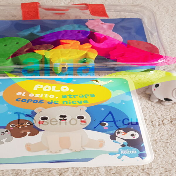 $ 39.746Libro de baño: OSO POLAR El librito mide 14 cm x 14 cm y trae: Un oso polar lanzaagua de personaje principal (7 cm x 5 cm) + valijita contenedora + 5 animalitos marinos en 3 cm de espesor de regalo Los animalitos son: 1 ballena de 7 cm x 4 cm 1 pez de…