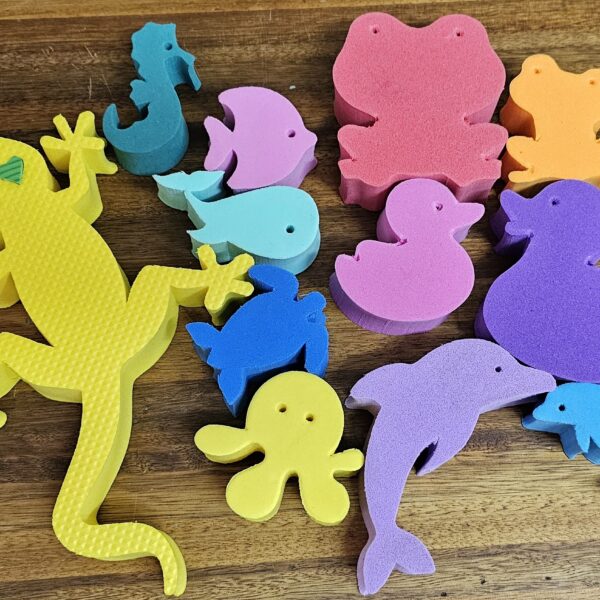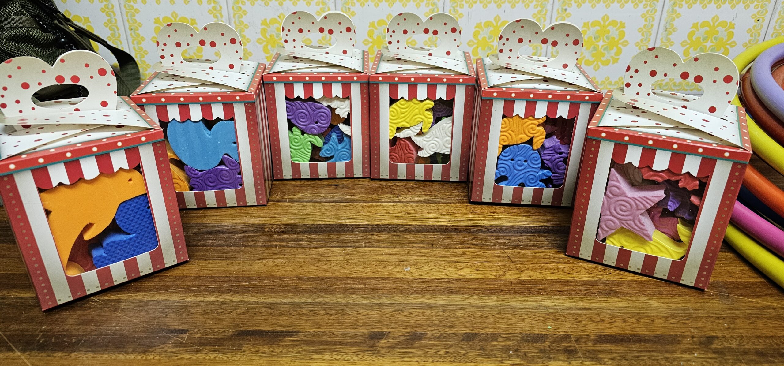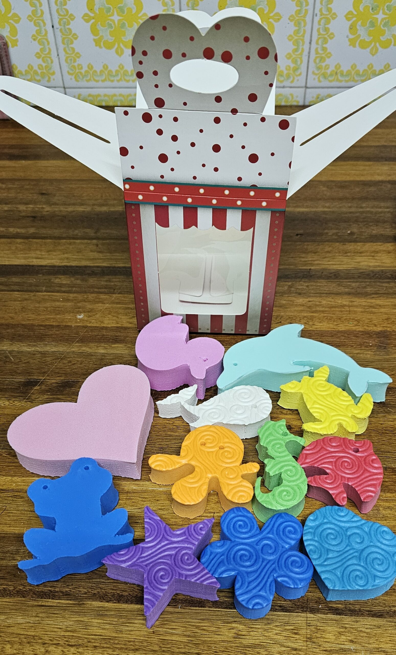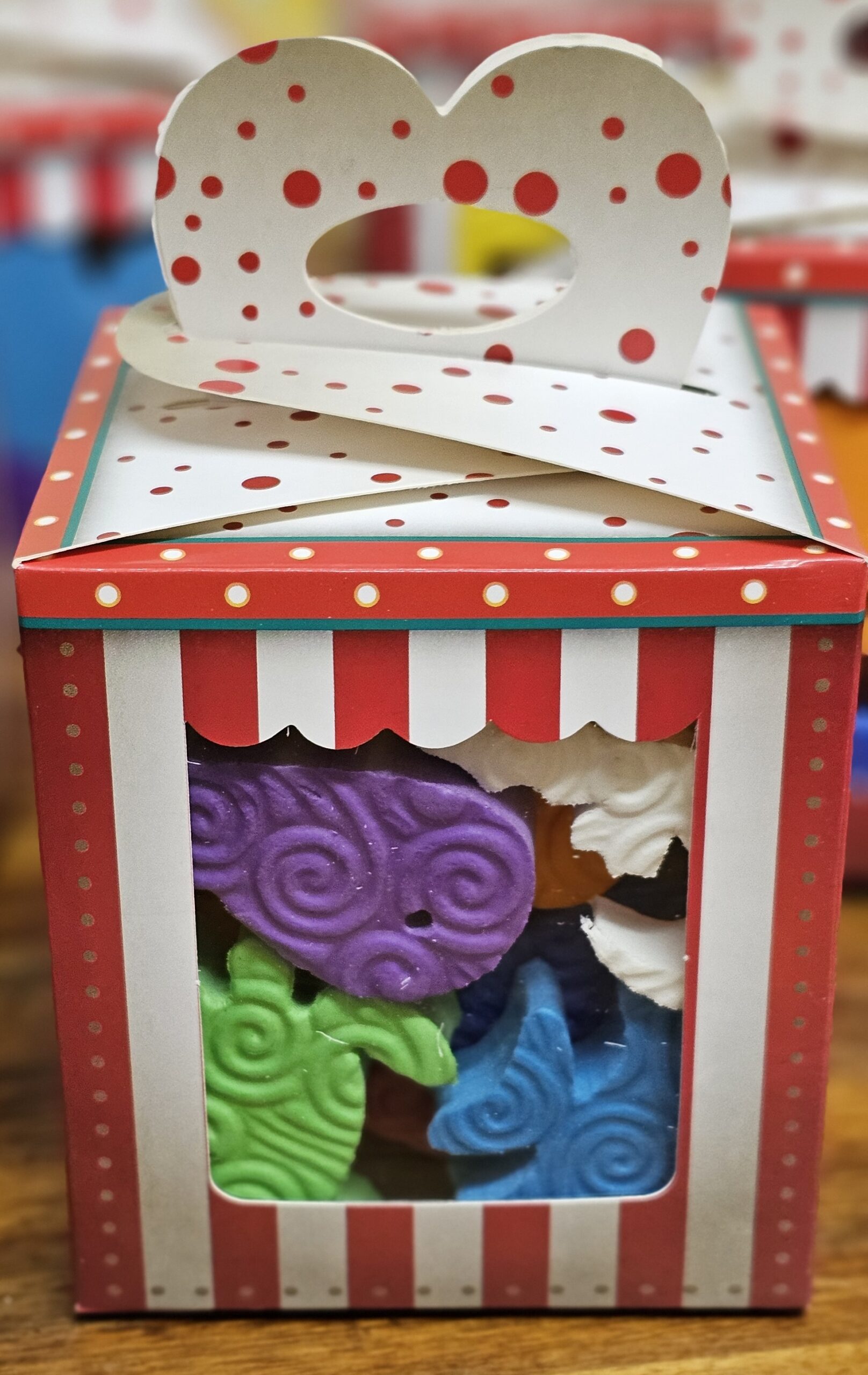Cajita navideña chica con 12 figuras flotantes en 15 mm para el baño o la pileta