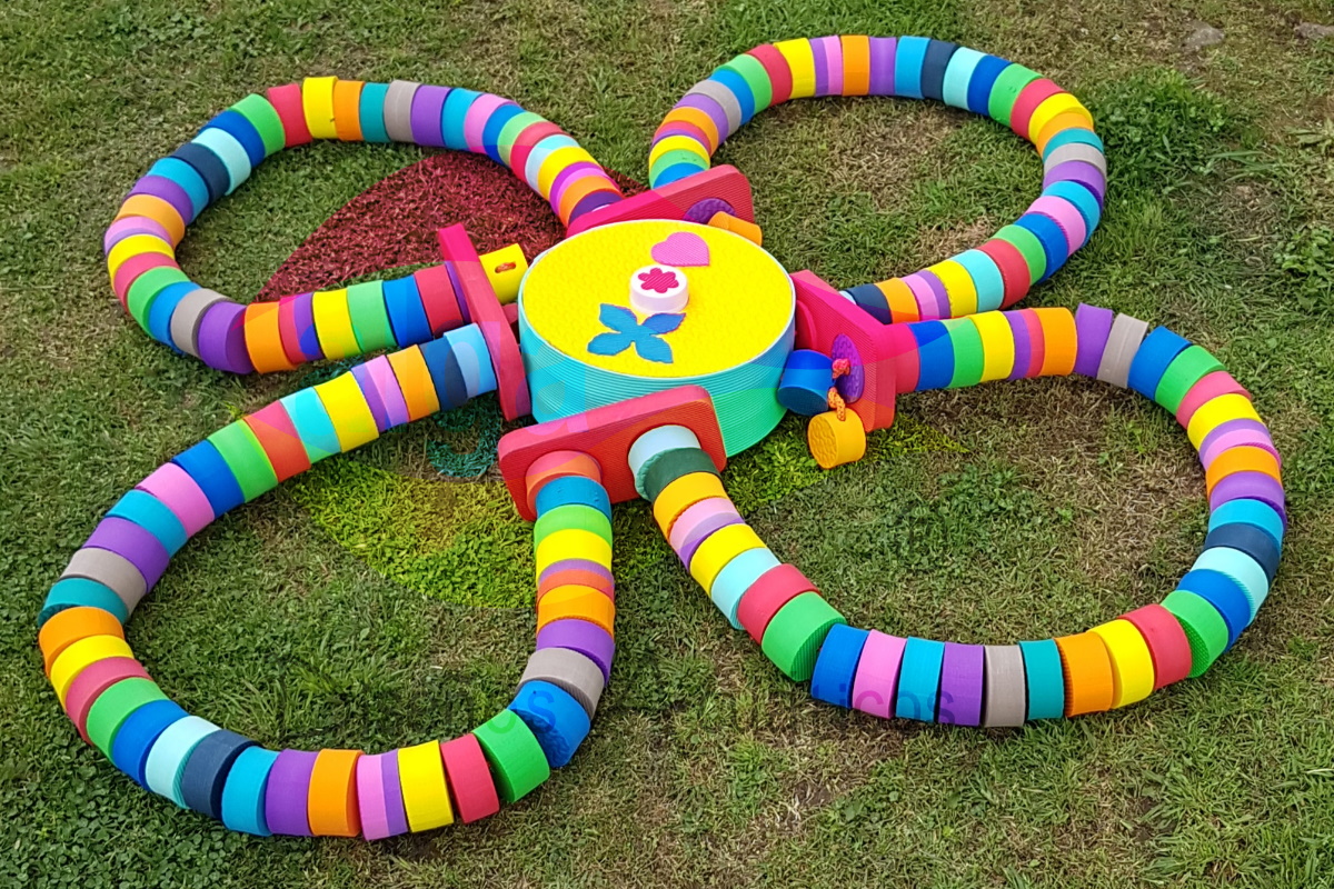 - Tiene múltiples usos, por ejemplo se puede armar una flor o pueden ir 4 chicos en el mismo elemento a la vez. ¡Poné a trabajar tu creatividad!