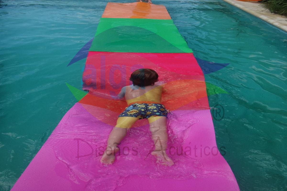 - Se coloca sobre otras colchonetas de alta flotabilidad que nos brindan la idea de un camino flotante. ¡Ideal para los mas chiquitos!