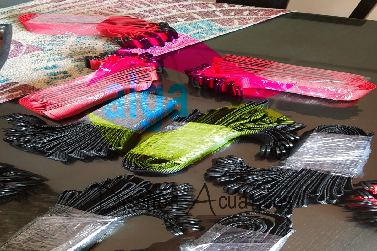 - Confeccionada con cinta mochilera de 4 cm de espesor con abrojo y dos pasantes como se ve en las fotos.
