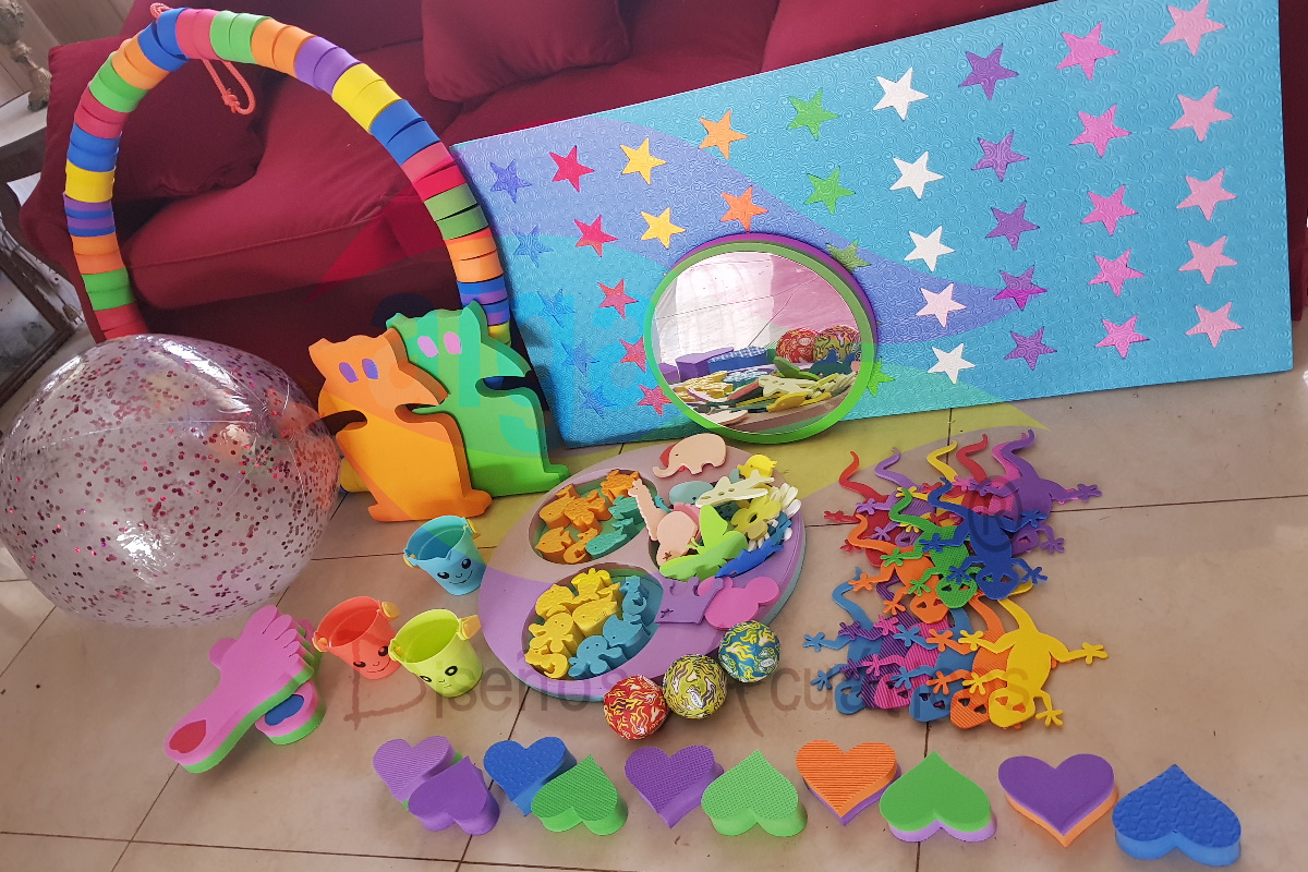 - UNA ALFOMBRITA con estrellas ENCASTRABLES (colchoneta individual de 1 m x 0.50 m por 15 mm de espesor). Sumamente útil desde el nacimiento del bebé hasta los 5 años y más. Múltiples usos, fácil de transportar, colores muy vivos, textura suave al tacto. Uno de nuestros productos “Estrella”