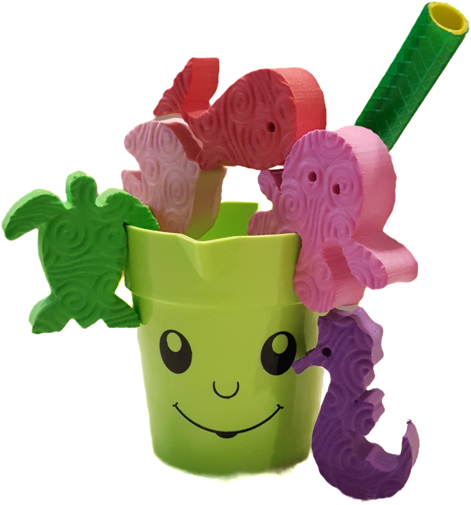 Un baldecito + manguerita + 5 animalitos marinos en 15 mm